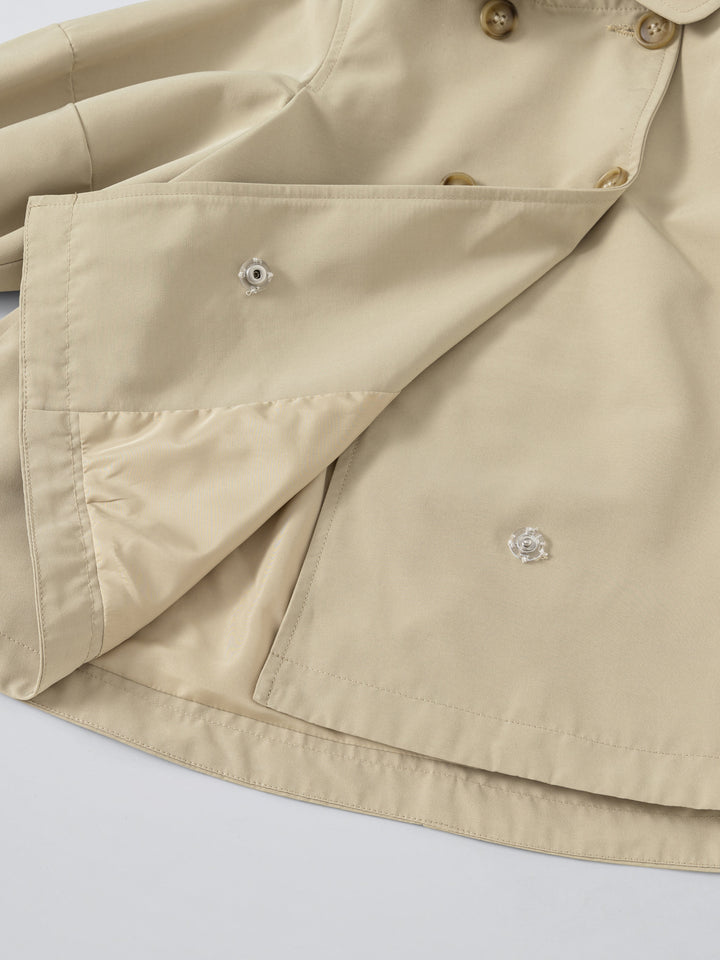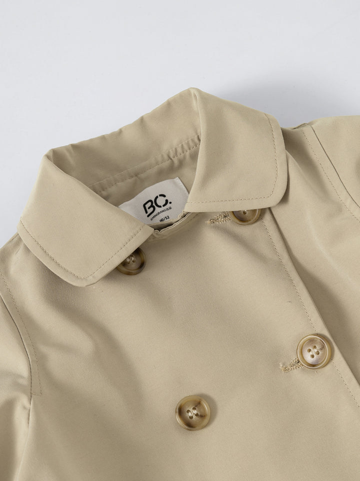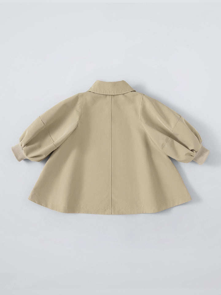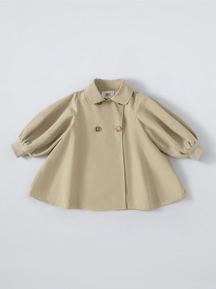 يتميز هذا المعطف بتصميم كلاسيكي واسع يمنح فتاتك إطلالة أنيقة ومريحة في نفس الوقت. يتميز بأزرار مزدوجة من الأمام وياقة تقليدية، بالإضافة إلى أكمام منتهية بحواف قطنية مطاطية لحماية إضافية من البرد. مناسب للمناسبات الرسمية والنزهات اليومية.